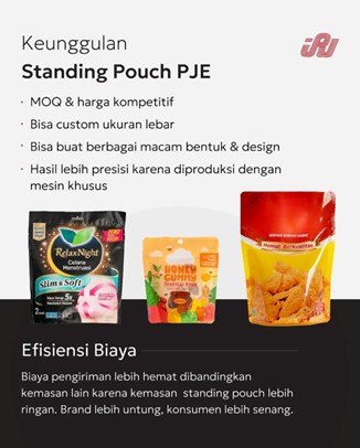 Keunggulan utama standing pouch adalah kombinasi antara tampilan estetika dan fungsi perlindungan produk. Kemasan ini juga mudah dibentuk dan disesuaikan (custom) sesuai kebutuhan merek, baik dari ukuran, warna, bentuk, hingga jenis penutup (ziplock, spout, valve, dan sebagainya).